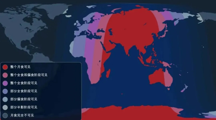 而对于这一次来说,包括我国在内的亚洲大部分地区,都在最佳观测区内,根据预报,本次月食将从北京时间9月7日23:28开始,至次日凌晨04:55结束,总时长达到5小时27分钟。其中,最精彩的“血月”阶段,即月亮完全进入地球本影的部分,将从9月8日01:30开始,持续长达1小时22分钟。